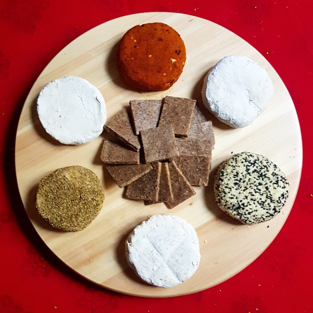 Hos oss kan du hitta ost som gjort av paranötter, valnötter, mandlar, cashewnötter, solrosfrön, pumpafrön eller hampafrön. Där finner du också oregano, paprika eller svarta kumminfrön kryddad ost. Vi också lagar cheddar, brie, brun och kryddost.